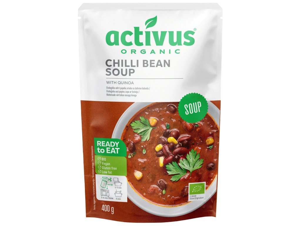 Activus juha od graha s čilijem i kvinojom, 400 g Organski sastav bez kemikalija, ekološki prihvatljiv.