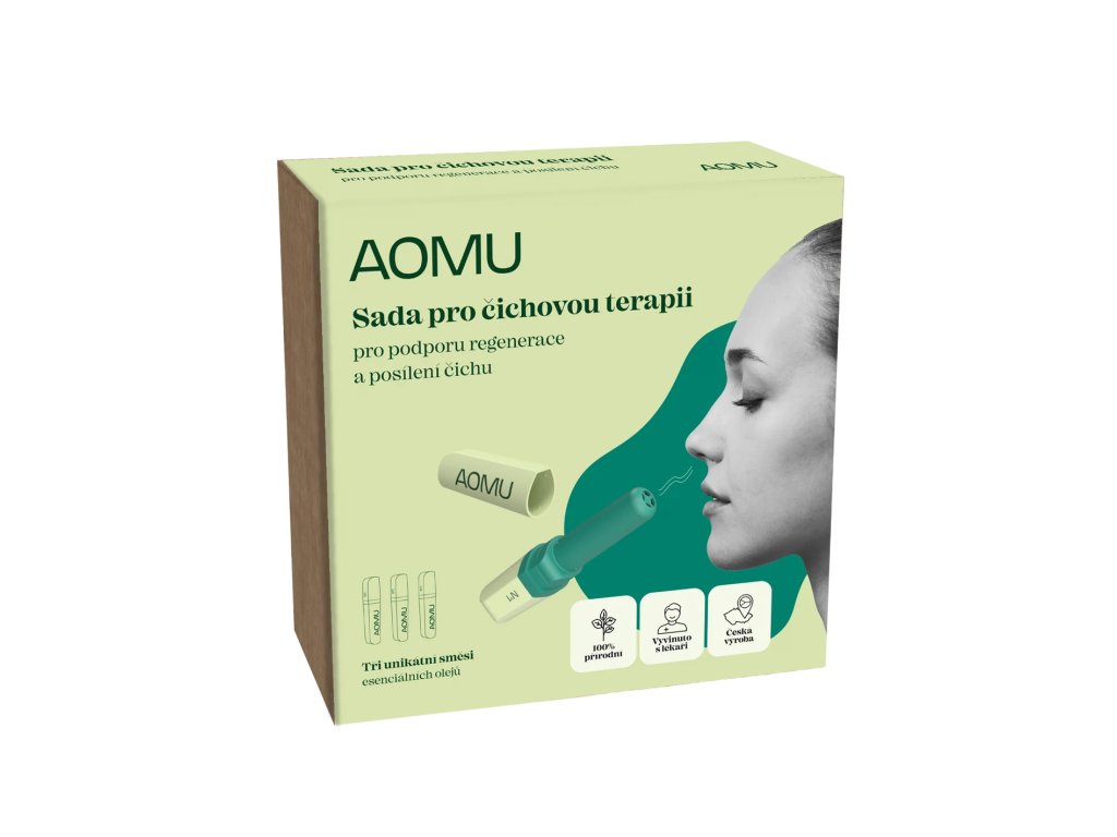 AOMU set za trening osjeta mirisa namijenjen je osobama sa smanjenim ili izgubljenim osjetom mirisa. Sadrži tri inhalacijska štapića s funkcionalnim mješavinama 100% prirodnih eteričnih ulja koja stimuliraju olfaktorne receptore i podržavaju njihovu obnovu. Redoviti trening osjeta mirisa može dovesti do postupnog poboljšanja percepcije mirisa. Prirodni sastav je nježan, a istovremeno vrlo učinkovit. Zahvaljujući praktičnom pakiranju, štapići se mogu lako koristiti kod kuće i u pokretu.