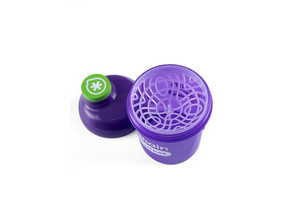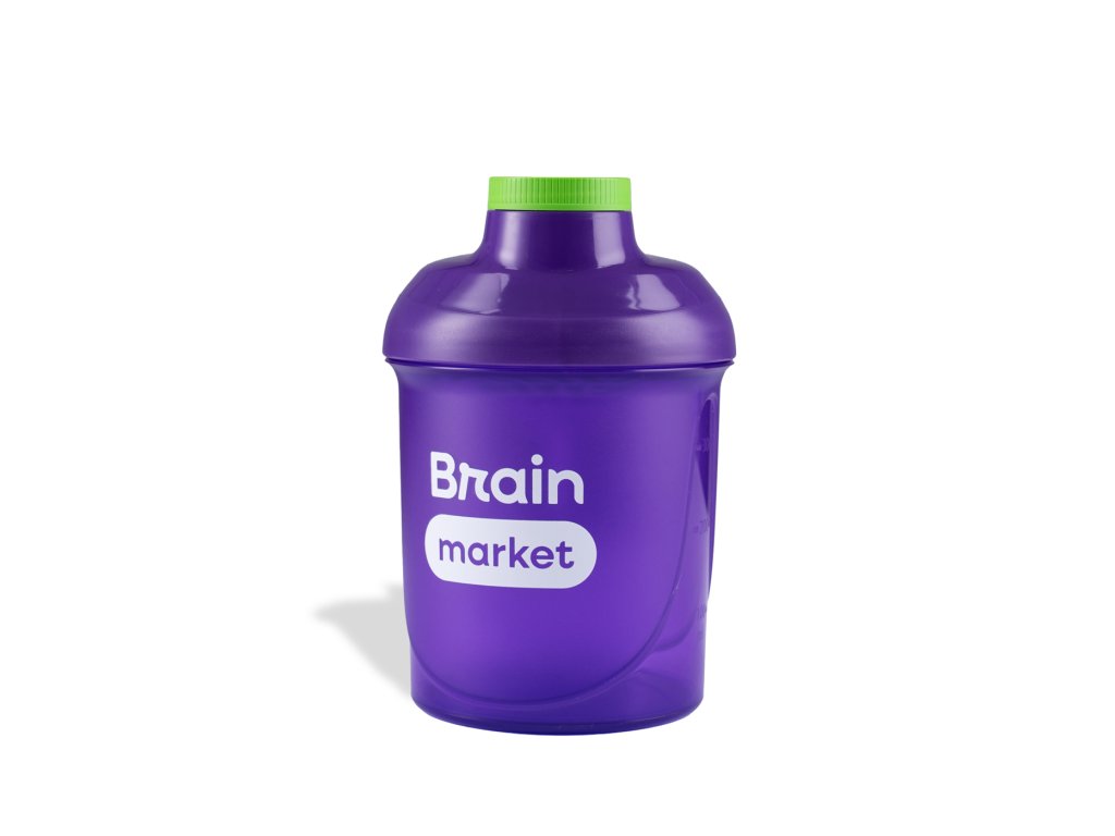 Šejker BrainMarket kapaciteta 300 ml izrađen je od visokokvalitetne, zdravstveno sigurne plastike bez BPA koja zadovoljava trenutne standarde za sigurno skladištenje i konzumaciju pića. Ljubičasti šejker opremljen je praktičnim navojnim čepom koji osigurava pouzdanu nepropusnost čak i pri intenzivnom trešenju. Zahvaljujući kompaktnom volumenu, idealan je za brzu pripremu manjih porcija pića, na primjer, za nadopunu proteina, BCAA, kolagena ili funkcionalnih mješavina. Upotpunjen je prepoznatljivim logotipom BrainMarketa s obje strane i savršen je za svakodnevnu upotrebu kod kuće, u teretani, u pokretu i kao elegantan dodatak.