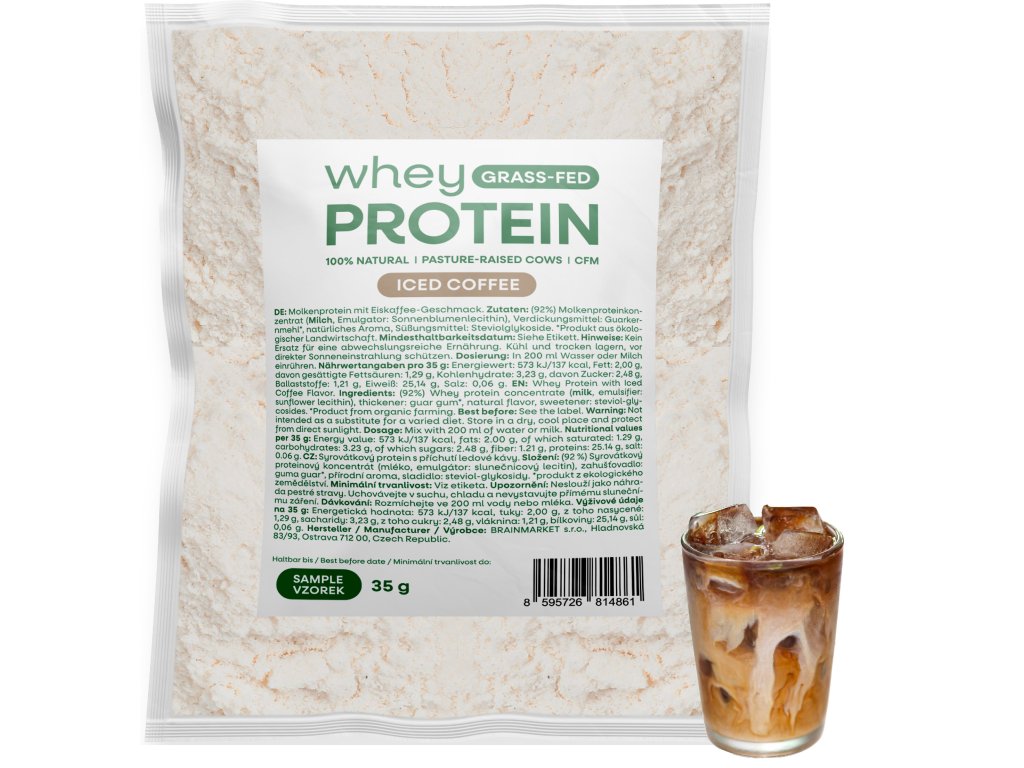 BrainMax Grass-fed Whey Protein, ledena kava, 35 g, UZORAK Mikrofiltrirani nedenaturirani protein iz mlijeka krava hranjenih travom, dodatak prehrani