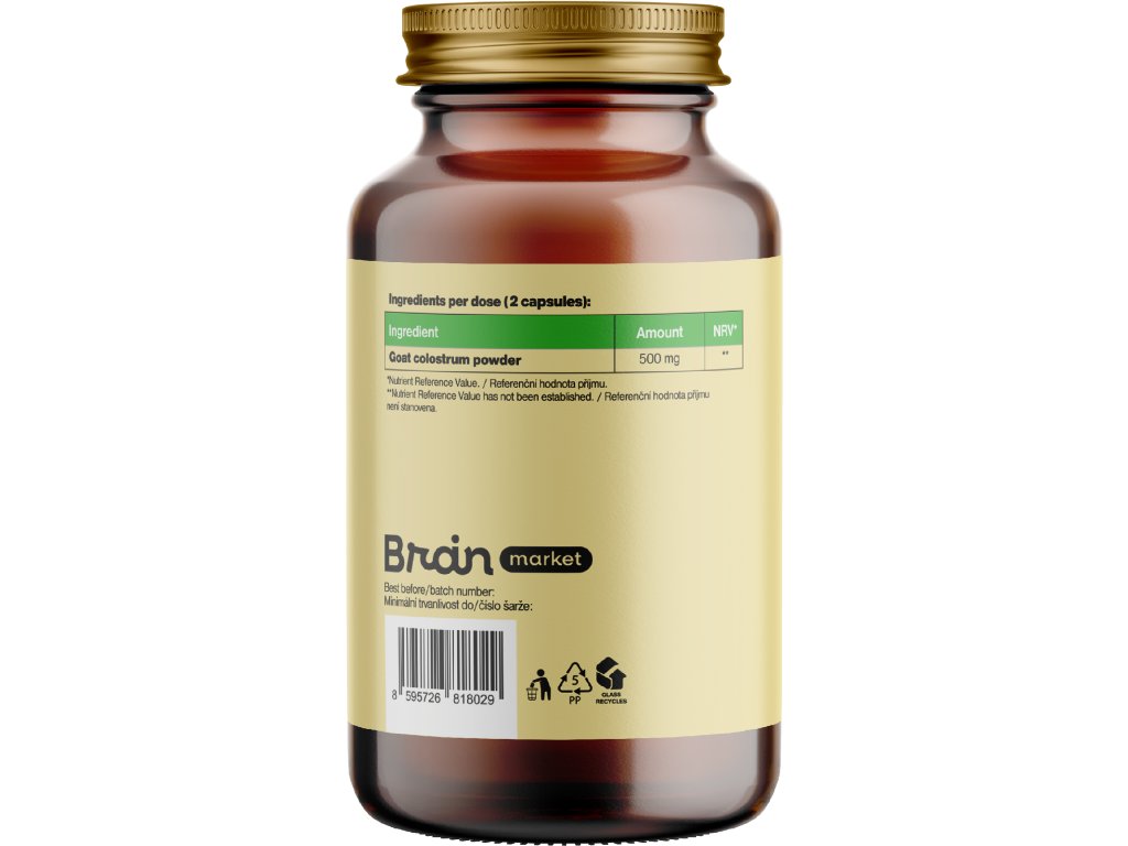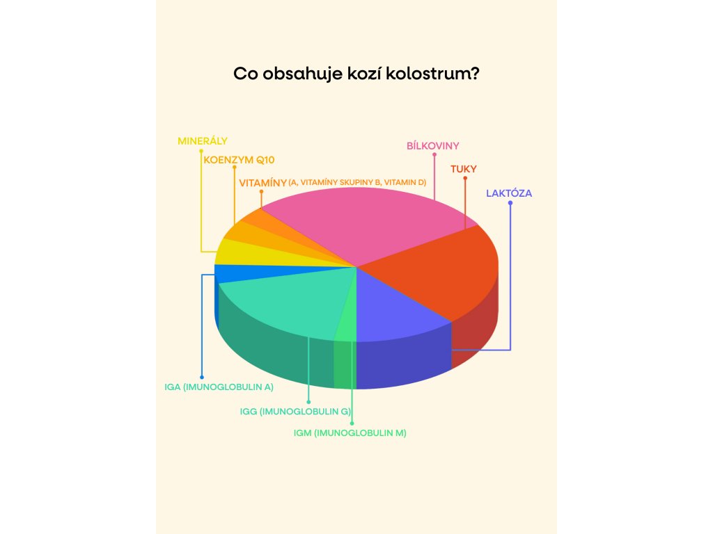 Kozji kolostrum nudi iznimno bogat spektar bioaktivnih tvari, uključujući imunoglobuline, laktoferin i faktore rasta, koji su važni za razvoj mladih životinja. Kolostrum dolazi s čeških farmi koza slobodnog uzgoja i etički je nabavljen. Prva doza uvijek pripada jaradima. Kolostrum se zatim nježno liofilizira kako bi se sačuvala njegova prirodna kvaliteta i osjetljive komponente. Zahvaljujući svom sastavu, koji više nalikuje majčinom mlijeku nego kravljem kolostrumu, ima blaži proteinski profil i većina ga ljudi bolje podnosi.