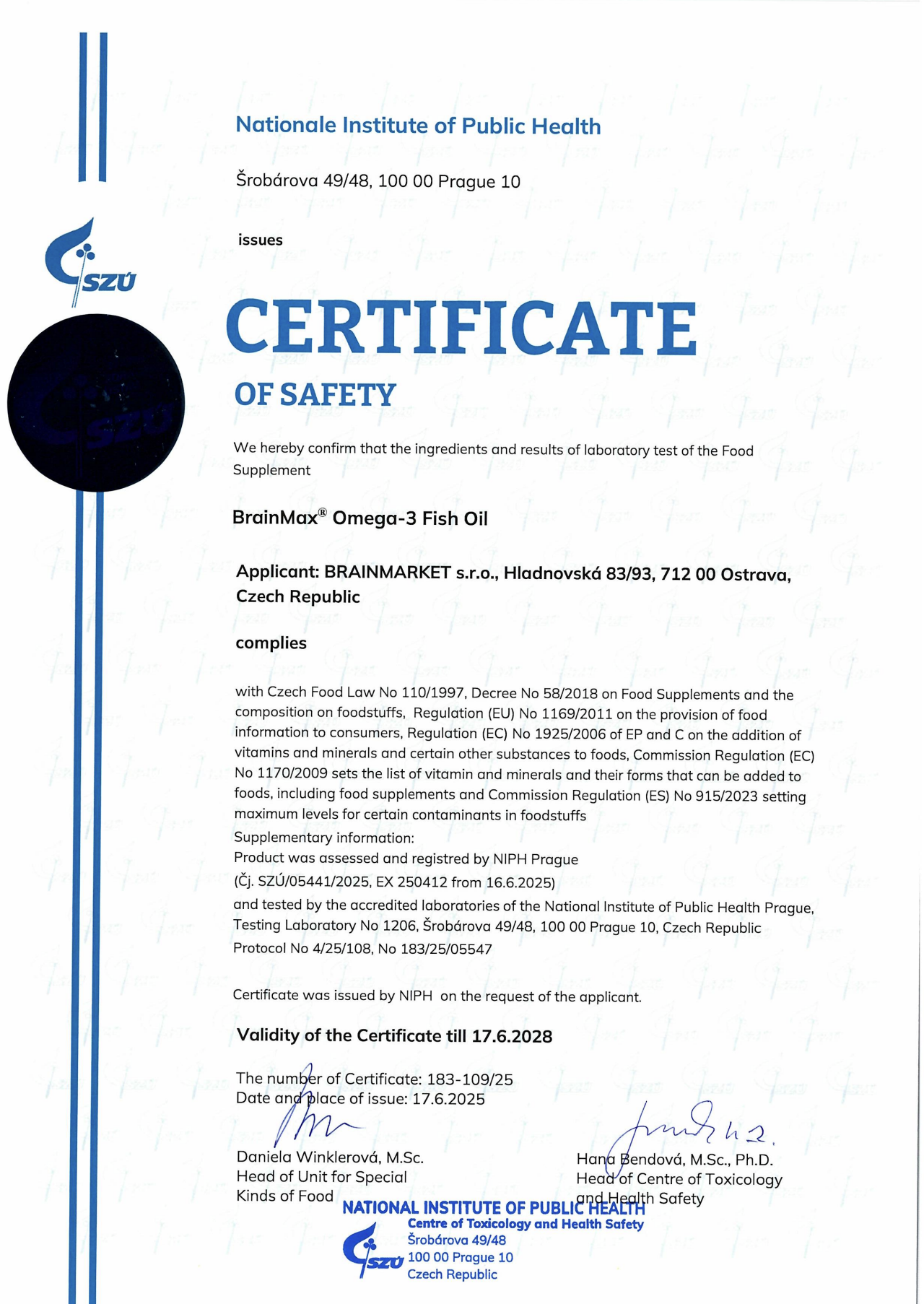 Proizvod BrainMax Omega-3 Fish Oil analiziran je u akreditiranom laboratoriju. Provedena je detaljna analiza sastava masnih kiselina i svježine ulja, uključujući parametre poput peroksidnog broja i TOTOX-a. Izmjerena vrijednost TOTOX iznosi 10,2, dok su vrijednosti EPA 664 mg i DHA 433 mg. Proizvod je također testiran na mikrobiologiju, teške metale i ukupnu sigurnost. Rezultati testiranja ovdje.