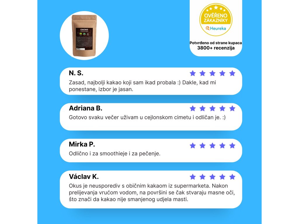 Sastav: 100% BIO kakao (Theobroma cacao) - sorta Forastero.