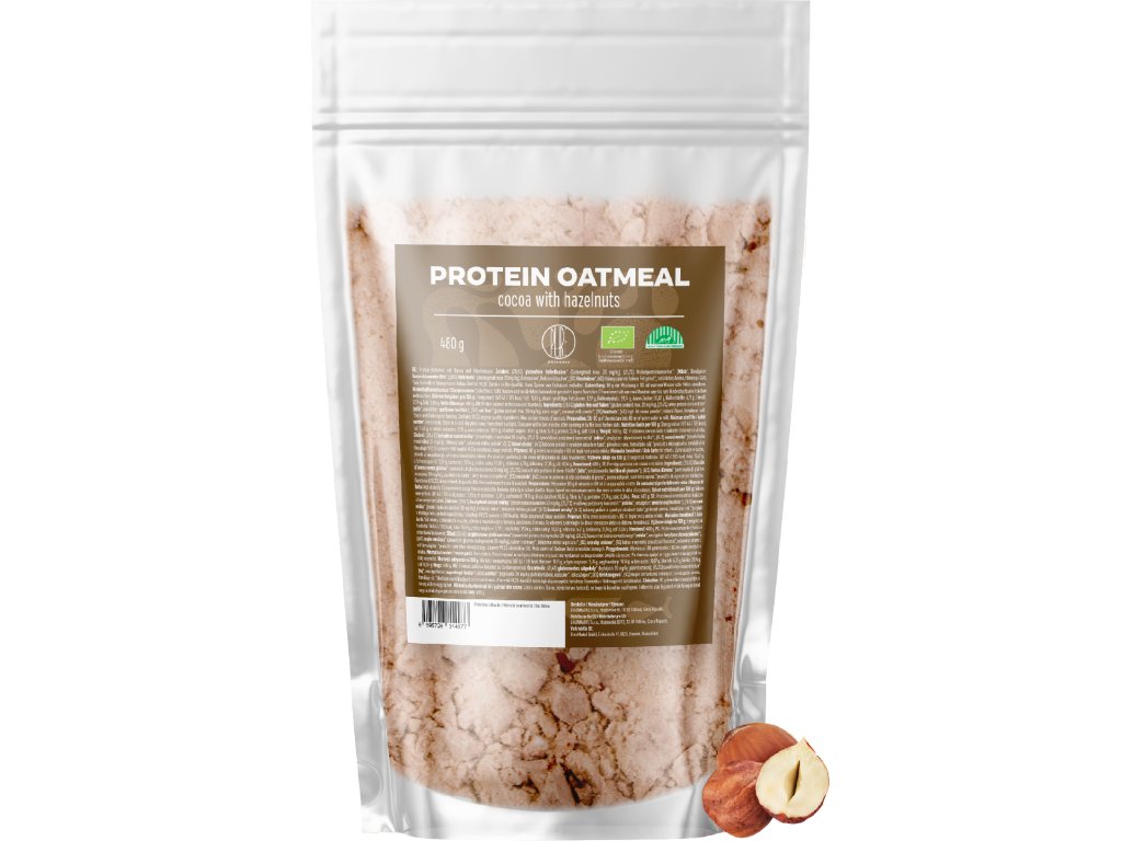 BrainMax Pure Protein zobene pahuljice, kakao s lješnjacima, ORGANSKI, 480 g Bez glutena, bogato proteinima / *CZ-BIO-001 certifikat