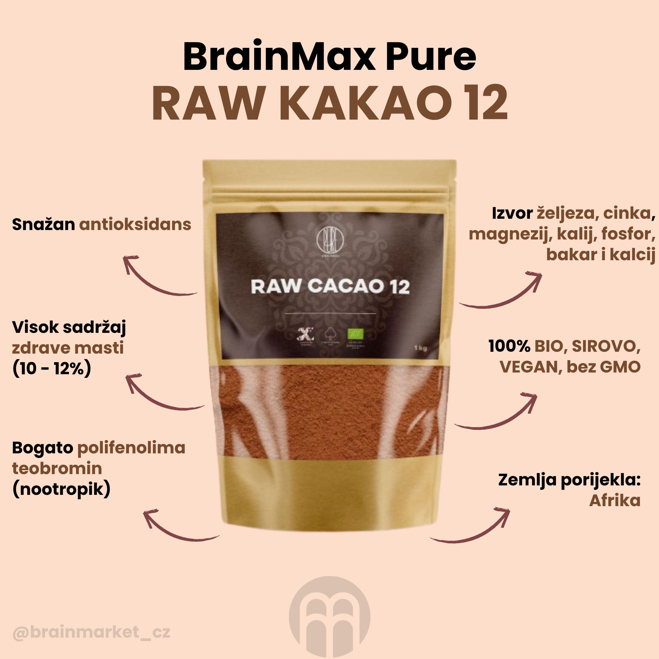 BrainMax čisti sirovi kakao 12