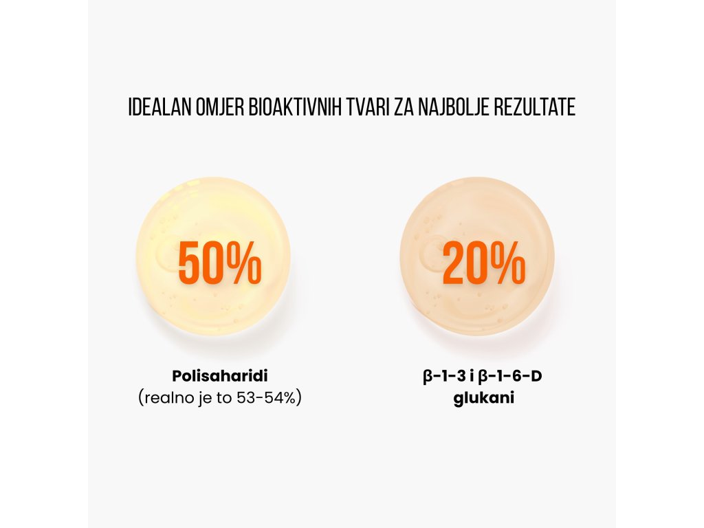 | Reishi (Ganoderma lucidum) ekstrakt iz plodnice min. 50% polisaharida min. 20% β 1,3/1,6 D-glukana | 500 mg | *** |