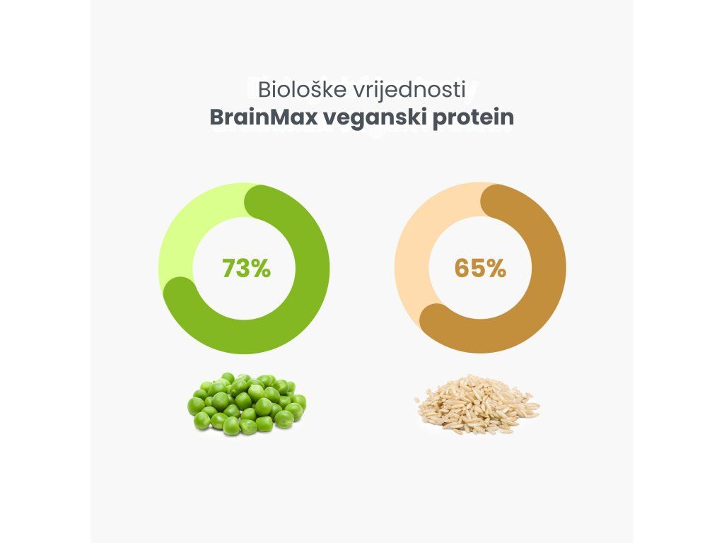 Proteini se ocjenjuju pomoću pokazatelja poznatog kao biološka vrijednost (BV). Na ljestvici od 0 do 100, gdje je 100 najbolji, većina životinjskih izvora proteina ima vrijednost 90+, dok se grah i pšenica kreću oko 50 bodova. Proteini graška i riže imaju jedne od najviših bioloških vrijednosti na biljnoj bazi, koje se kreću oko 70 bodova. No, ako ih kombiniramo, dobivamo biološku vrijednost usporedivu sa sirutkinim proteinom.