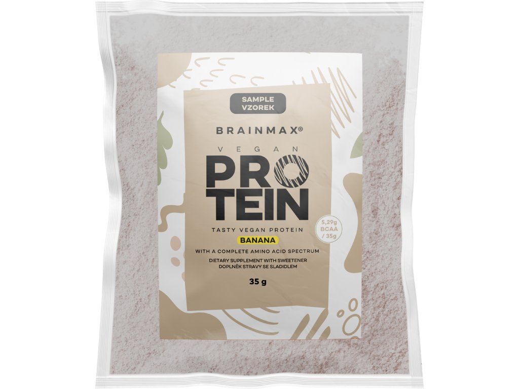 BrainMax Vegan protein, banana, 35 g 24 g proteina, 5,29 g BCAA, Kompletan Amino spektar, Zaslađeno stevijom, dodatak prehrani