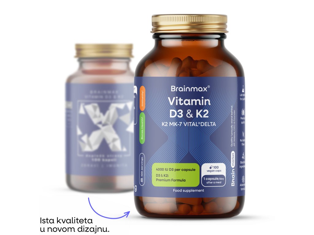 - Ovo je sinergistička kombinacija esencijalnih vitamina D3 i K2 s visokom bioraspoloživošću.