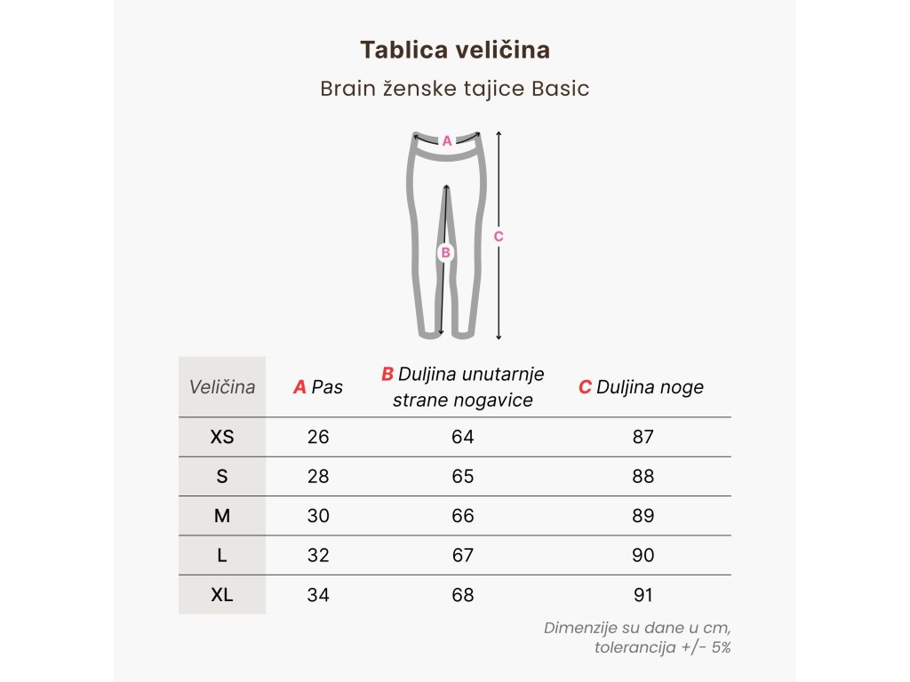 Ženske tajice Basic BrainMax u crnoj boji izrađene su od kvalitetne mješavine najlona (68 %) i elastina (32 %), što osigurava elastičnost i optimalno prilagođavanje figuri. Elastična tkanina pruža visoku udobnost pri kretanju, idealna za sportske aktivnosti i fitness. Na stražnjoj strani tajica nalazi se natpis BRAINMAX, koji daje tajicama moderan i originalan izgled.