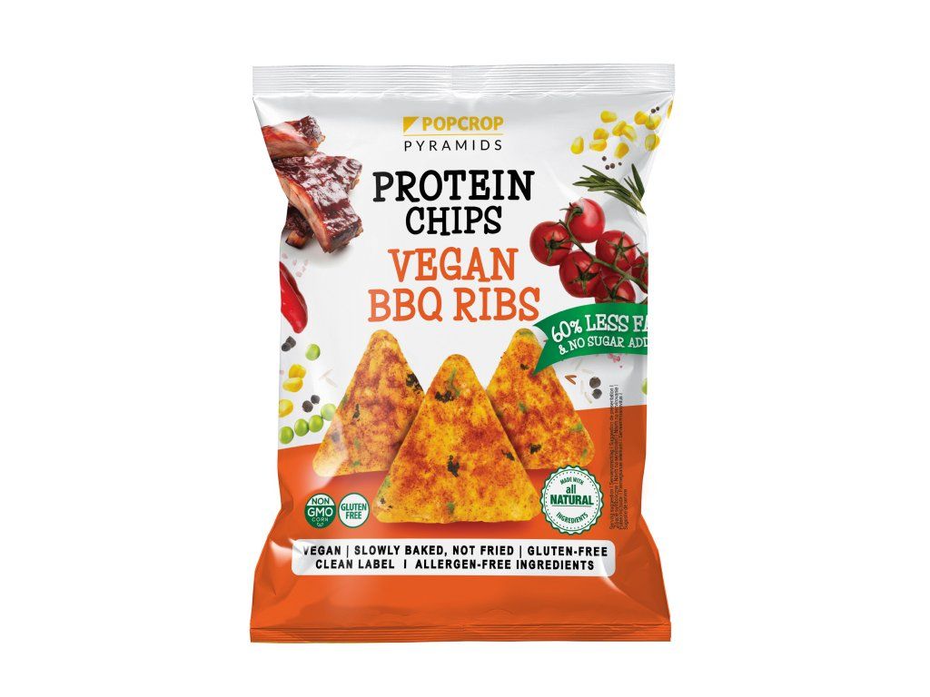 Popcrop proteinski čips s okusom BBQ rebarca, 60 g Hrskavo, lagano i pogodno za prehranu bez glutena