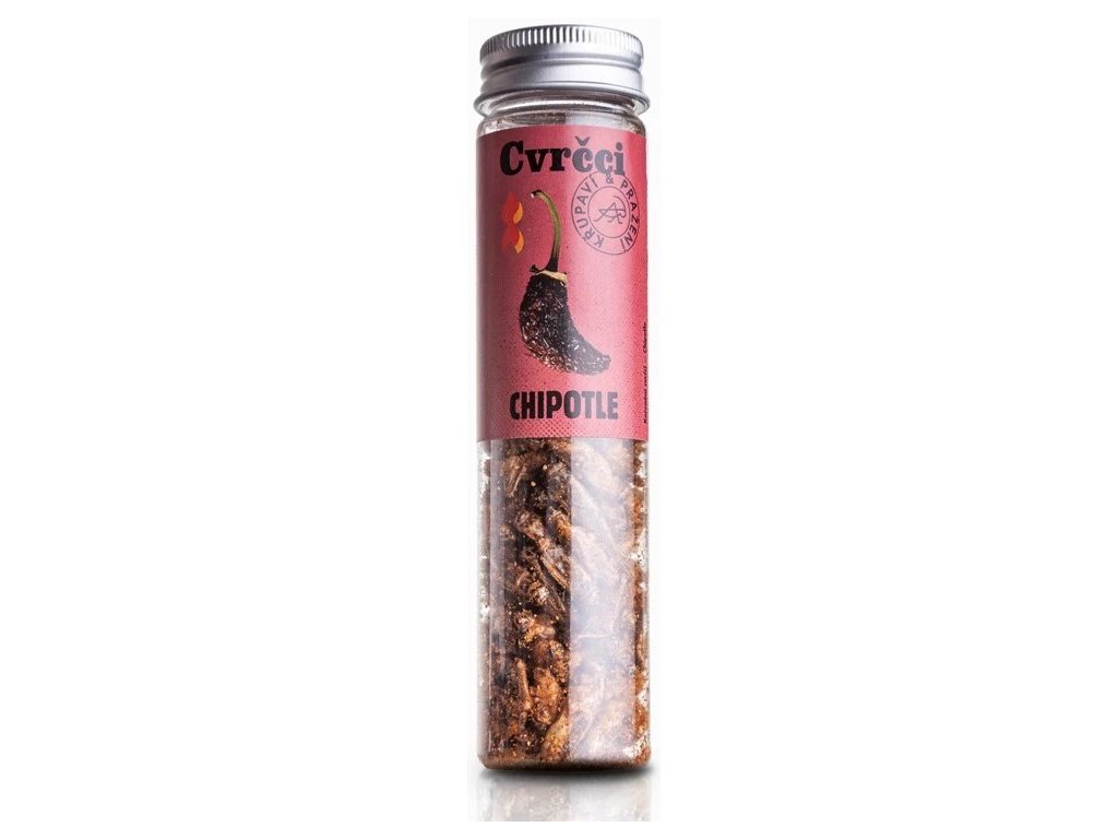 Cvrčci (acheta domesticus) (84%), organsko hladno prešano suncokretovo ulje, chipotle (3%) (100% dimljena jalapeno paprika), sol, paprika, čili, luk, češnjak, kumin, crni papar, piment, muškatni oraščić, origano .